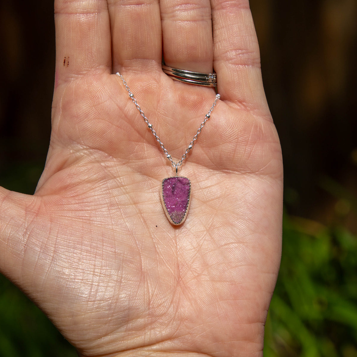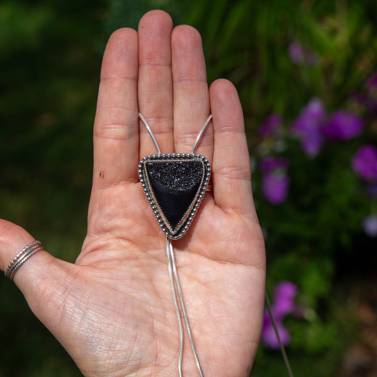 36" Black Druzy Agate Triangle Sterling Silver Chain Bolo La Femme