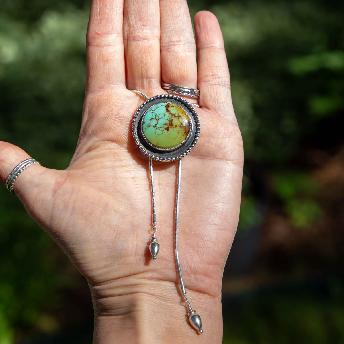 36" Hubei Circle Turquoise Sterling Silver Chain Bolo La Femme
