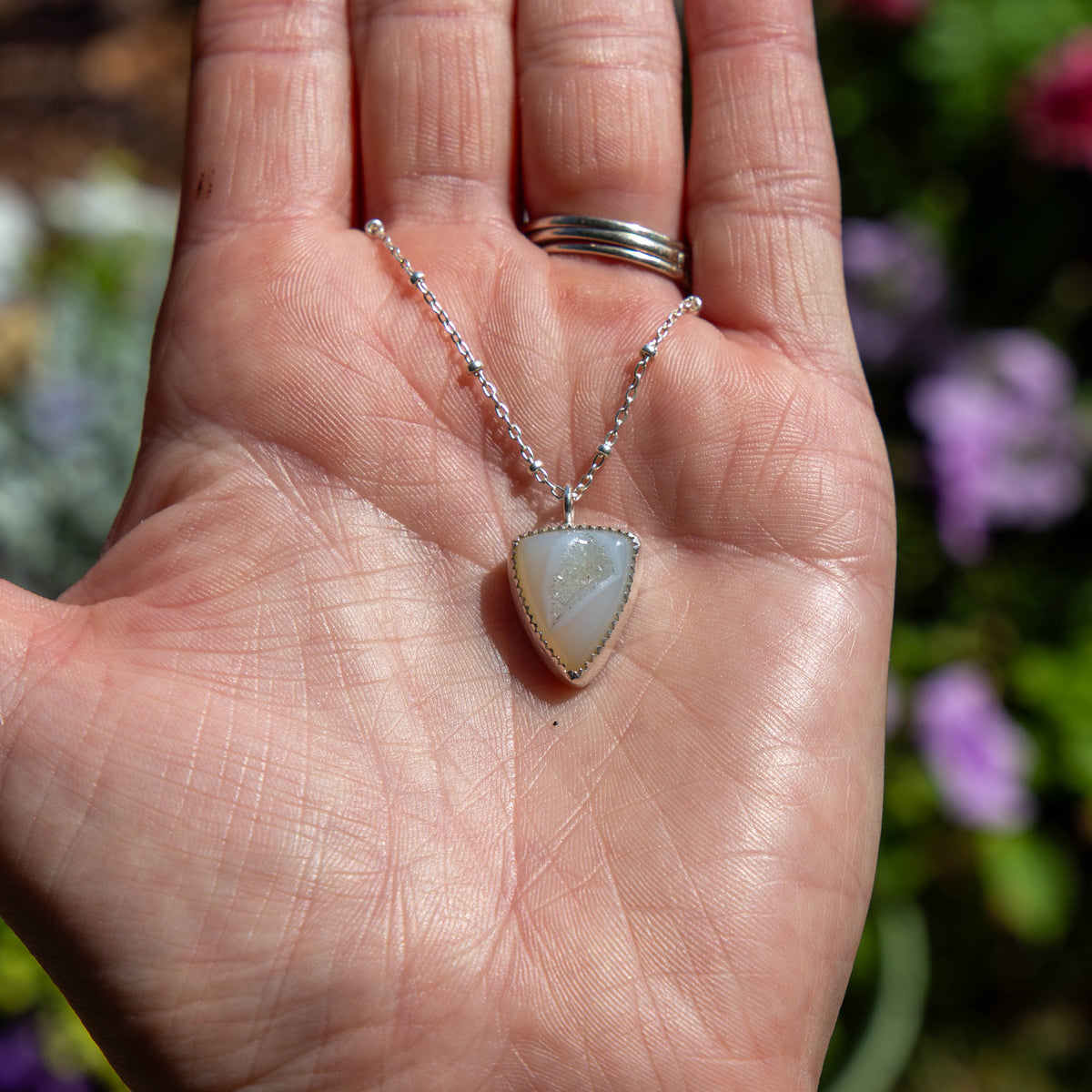 16" White Druzy Agate Sterling Silver Layering Necklace
