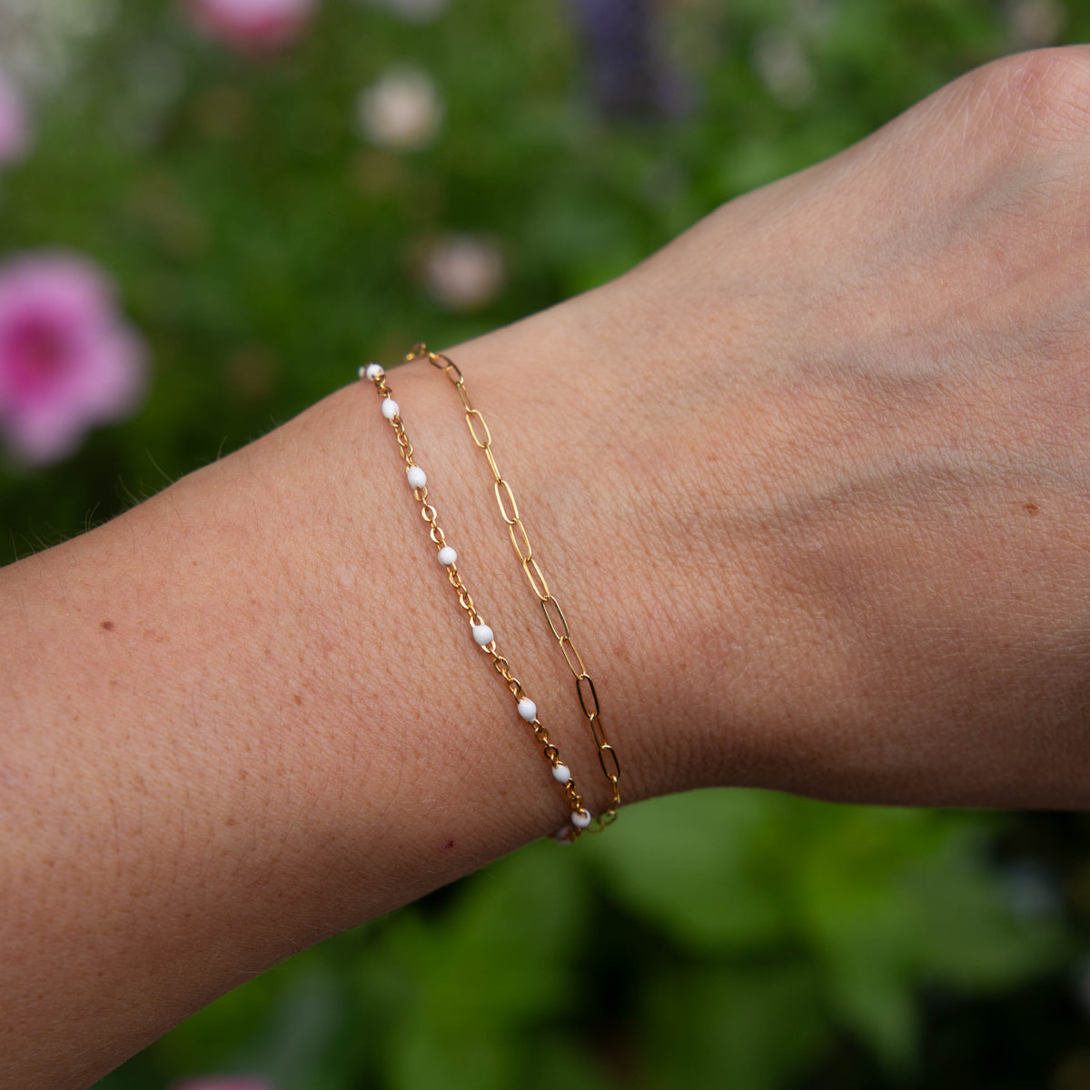 14k Gold Filled Paperclip & White Enamel Chain Bracelet - 7"