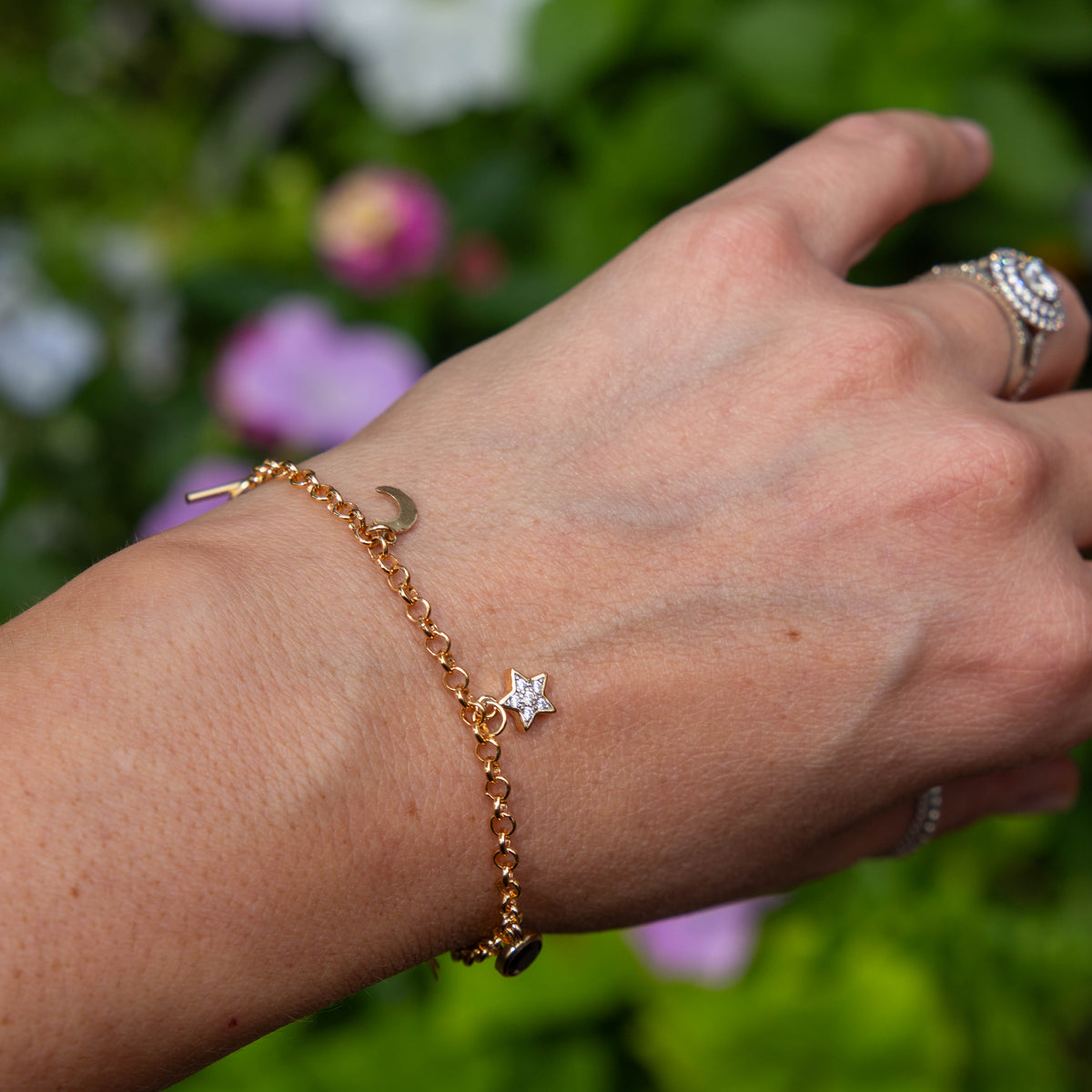 14k Gold Filled Black Onyx Charm Bracelet - 7"