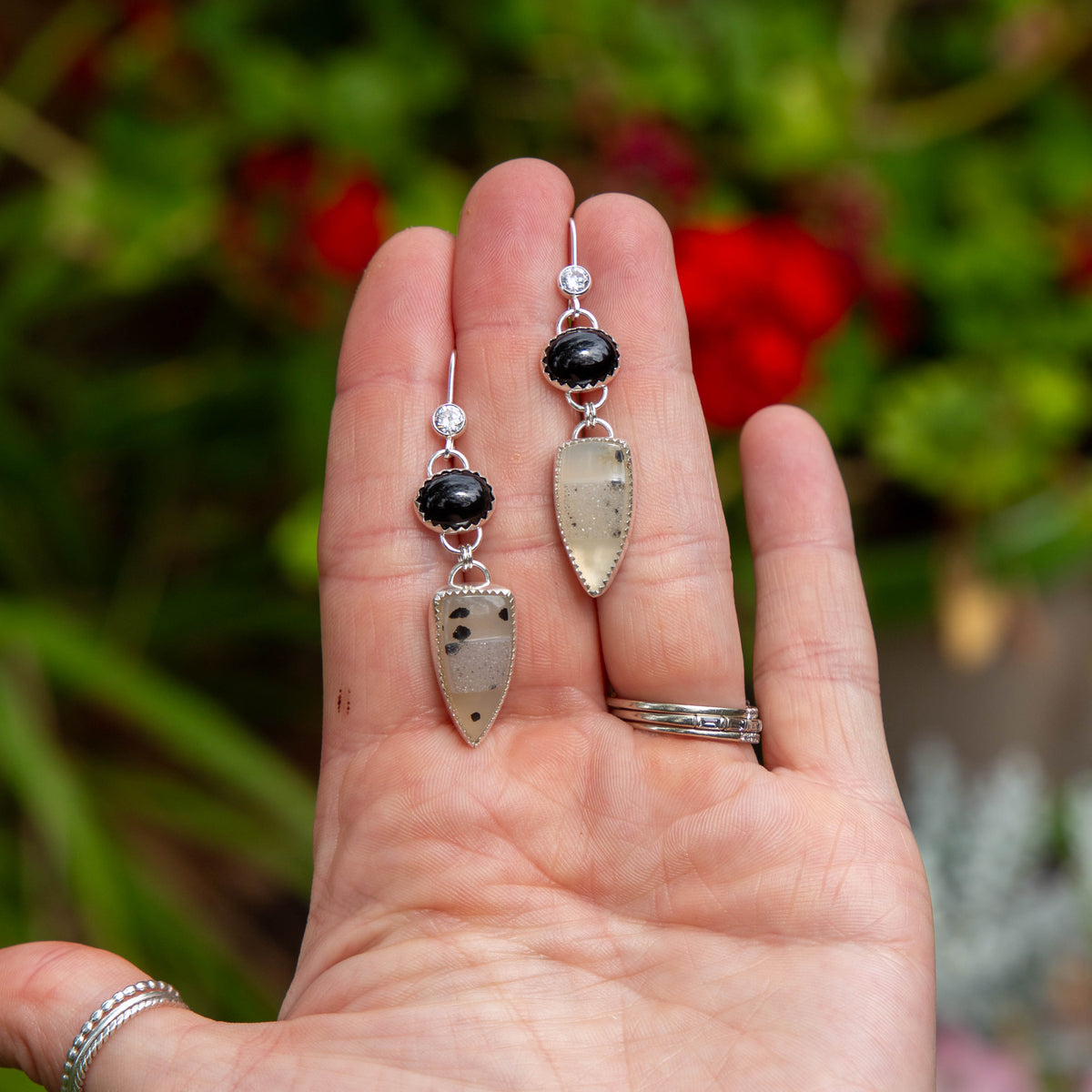 Campitos Turquoise & Black Onyx Celestial Mesa Sterling Silver Statement Earrings
