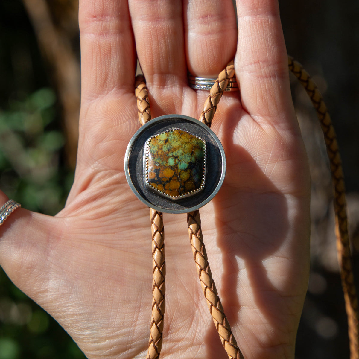 42" Hubei Turquoise Sterling Silver Shadowbox Circle Bolo