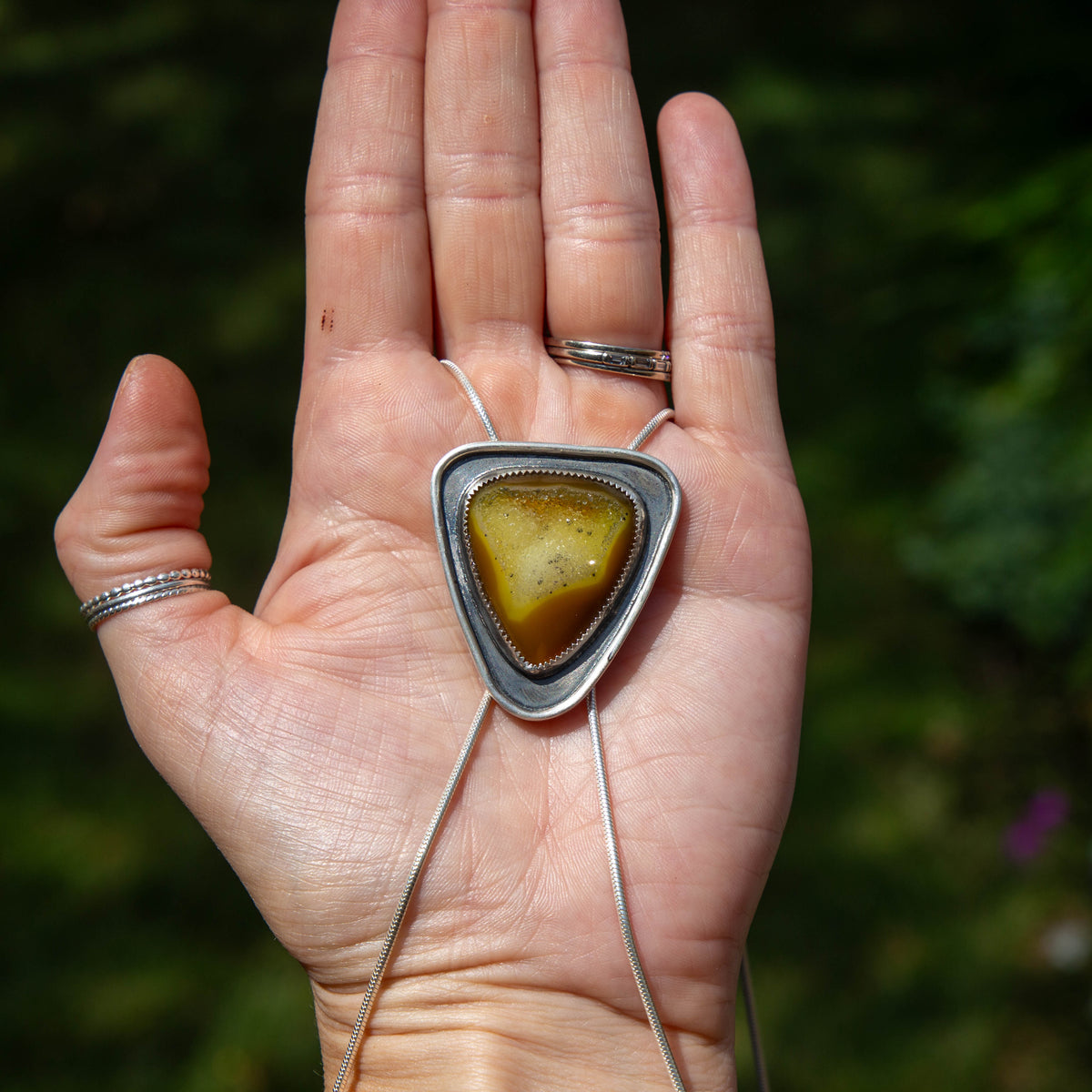 40" Yellow Druzy Agate Sterling Silver Chain Bolo La Femme